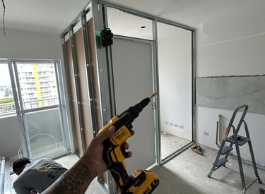 Transformamos espaços com drywall e acabamento completo.