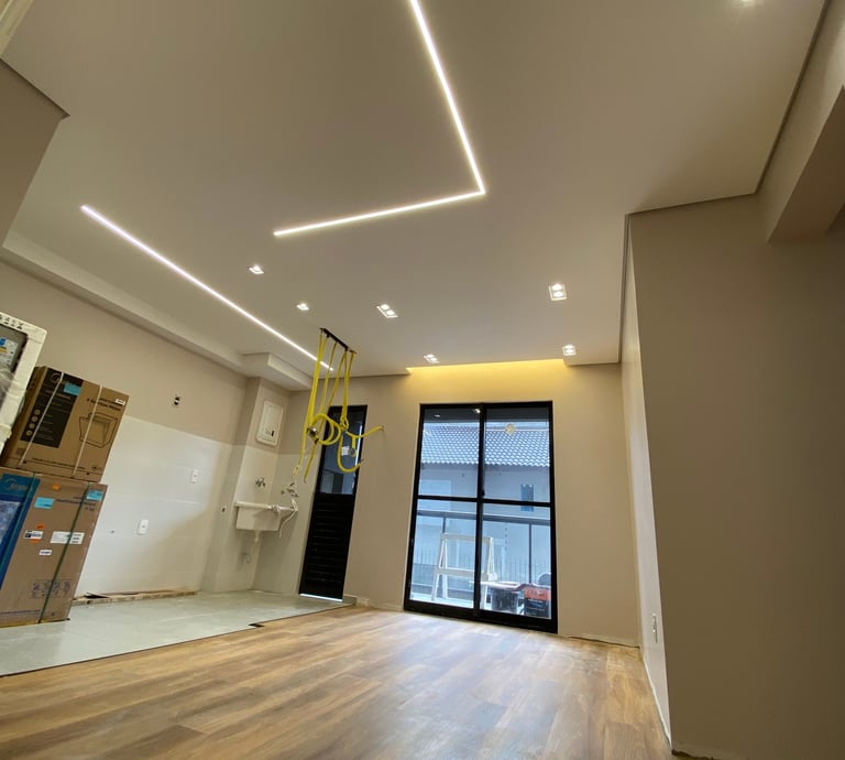 Drywall, elétrica, pintura e iluminação para sua obra.